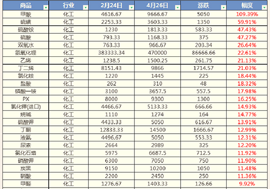 国内市场也难“独善其身”。自俄乌冲突以来,在监测的108种化工品中,近6成化工品实现上涨,其中有22种化工品涨幅超过10%。